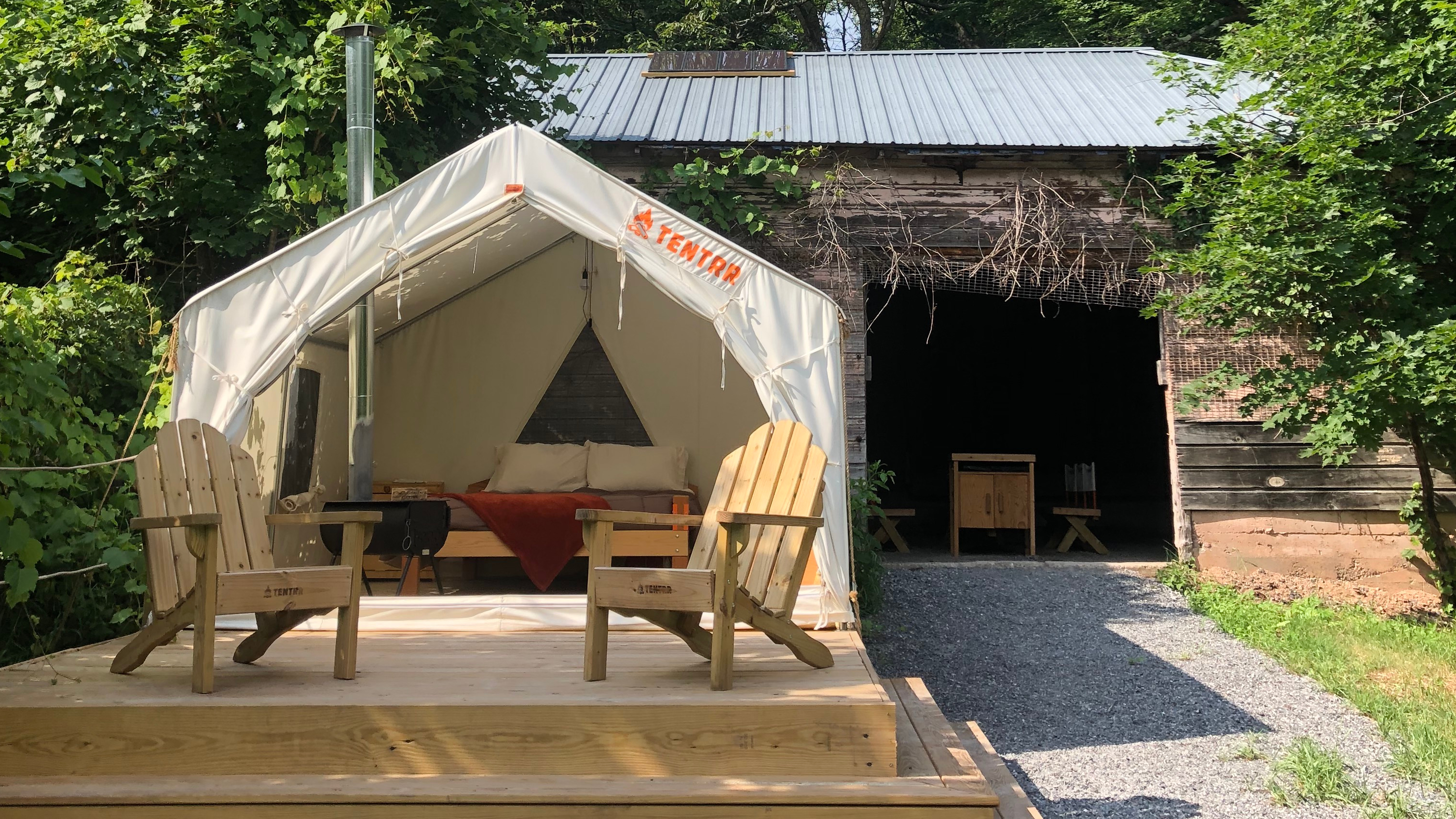 “Glamping” is a recent phenomenon that has brought together some of the luxuries of a hotel stay, with the natural setting and simplicity of camping. I had only ever experienced this one other time through Fancy Camps at a music festival in Alabama. Although their execution was flawless – complete with a premium hotel style bed, air conditioner and outlets, the setting amongst other festival goers wasn’t the most serene. But that wasn’t the case when staying at the Catskill Game Farm’s Glamping site in Catskill, New York.