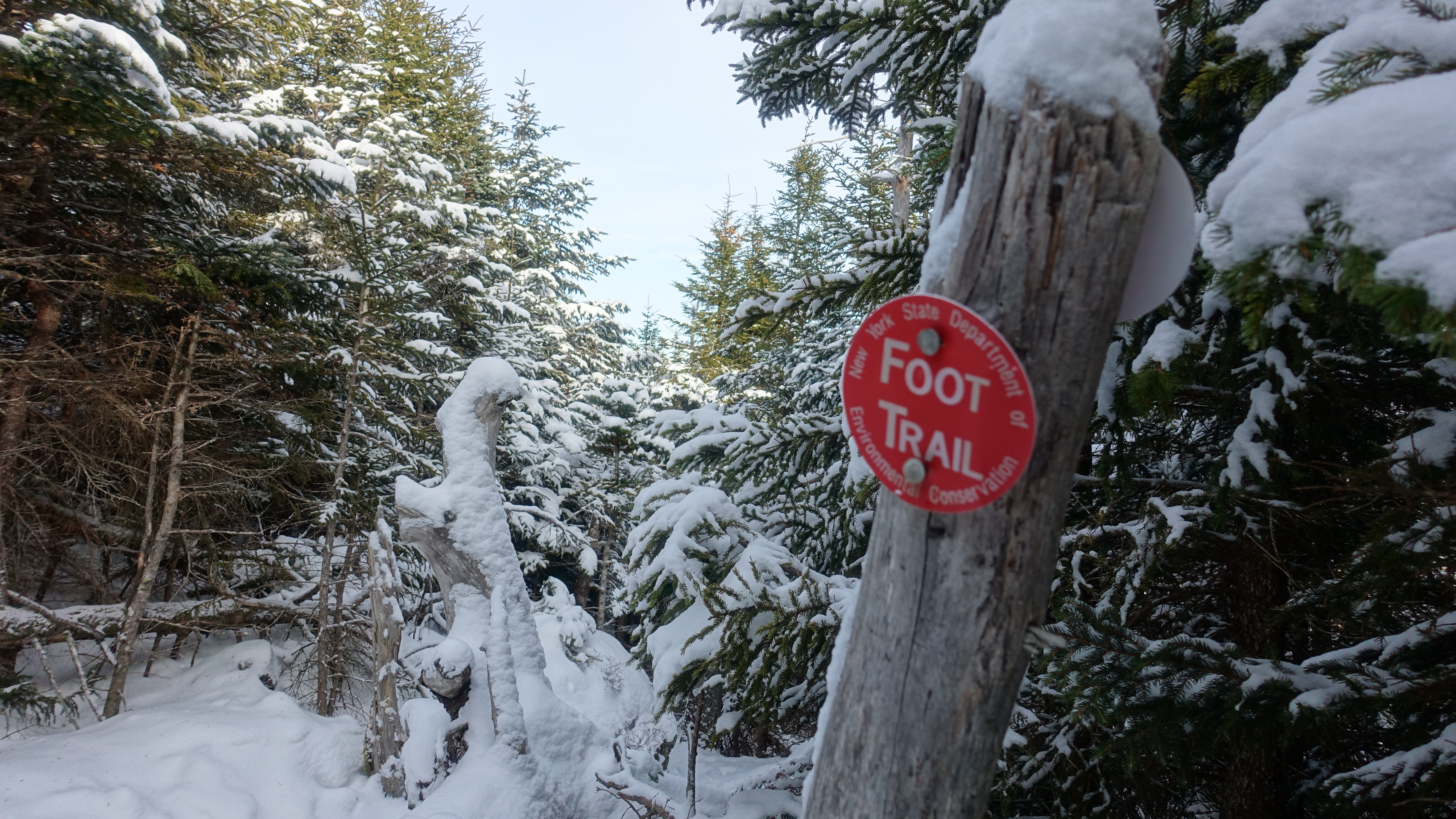 There are a few small streams to cross (which will obviously swell in the spring and after summer rains), which were not fully frozen during this mid-December traverse. The trail follows a number of stream beds, so you’ll be doing some rock hopping as you work your through. These will freeze over as winter moves on. Be weary and mindful of the fact that the trail isn’t incredibly well marked – some markers are very spaced out, and others are now on fallen trees or partially covered by snowfall. There were several times when making my way up where I had to spend an extra few moments to make sure that I had stayed on the trail.