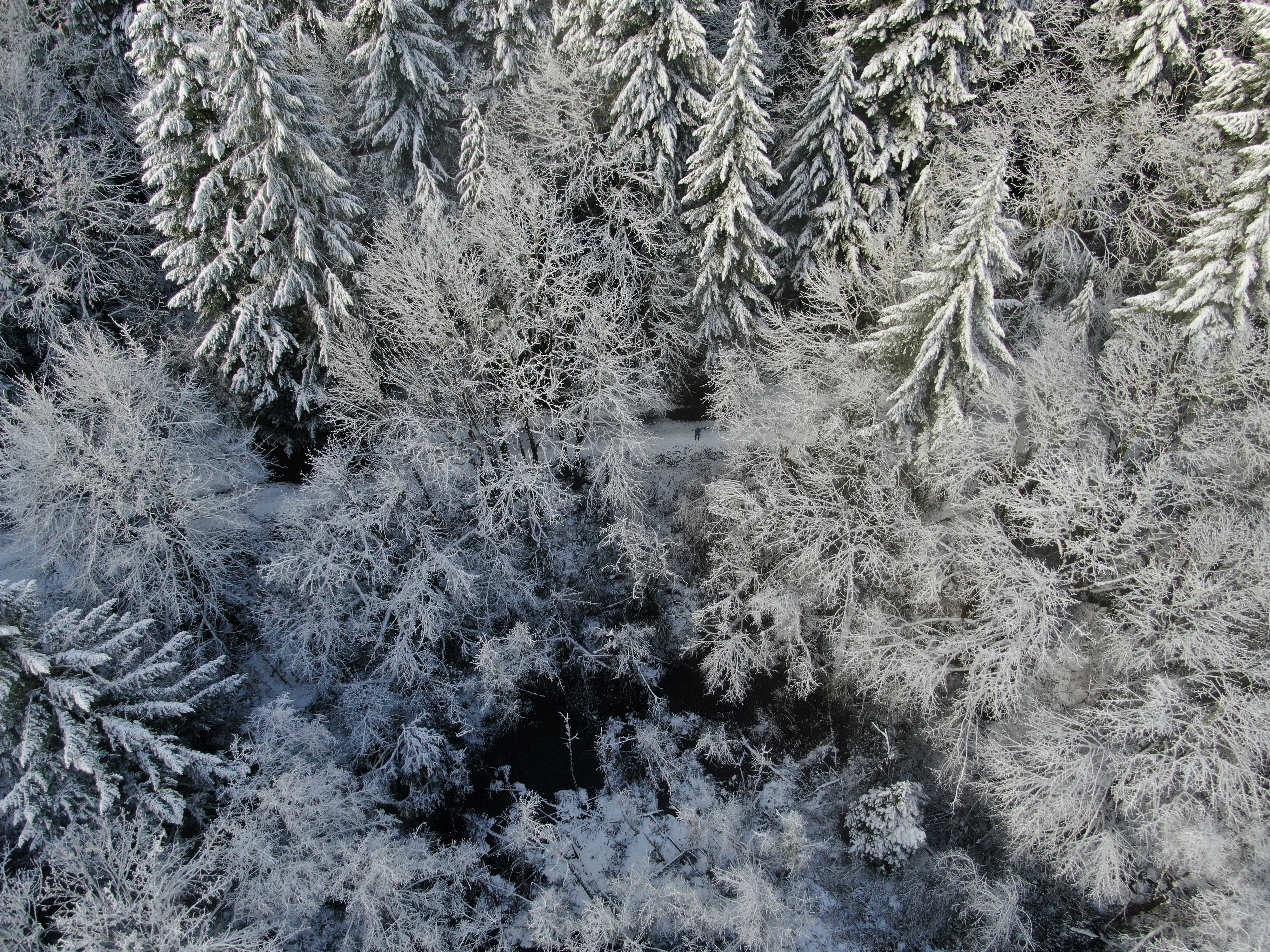 Once again, we found ourselves alone on the trail, with nothing but the sounds of water and the quiet of falling snow. It was one of the first times in a while that I was able to photograph a fresh snow covering trees from above – and was able to get some stunning winter shots in addition to the green and snowy waterfall.