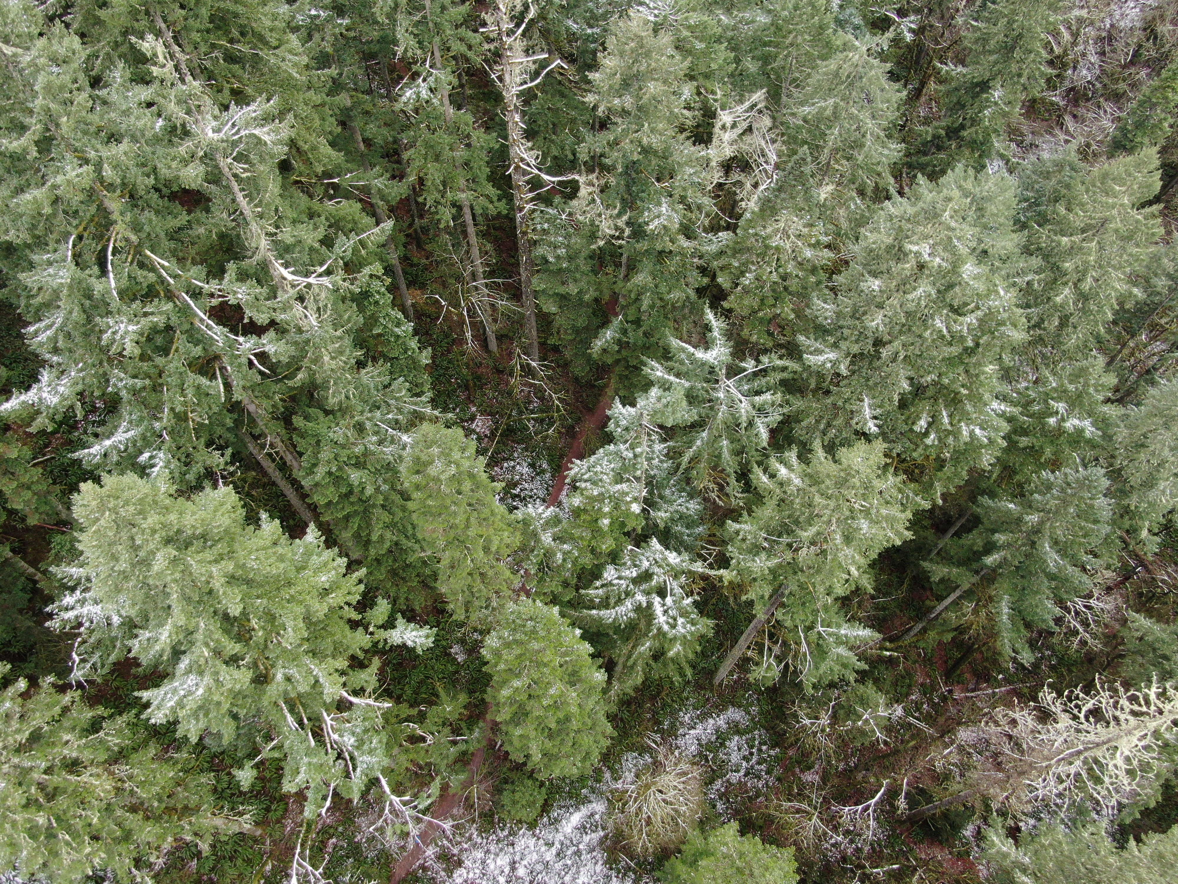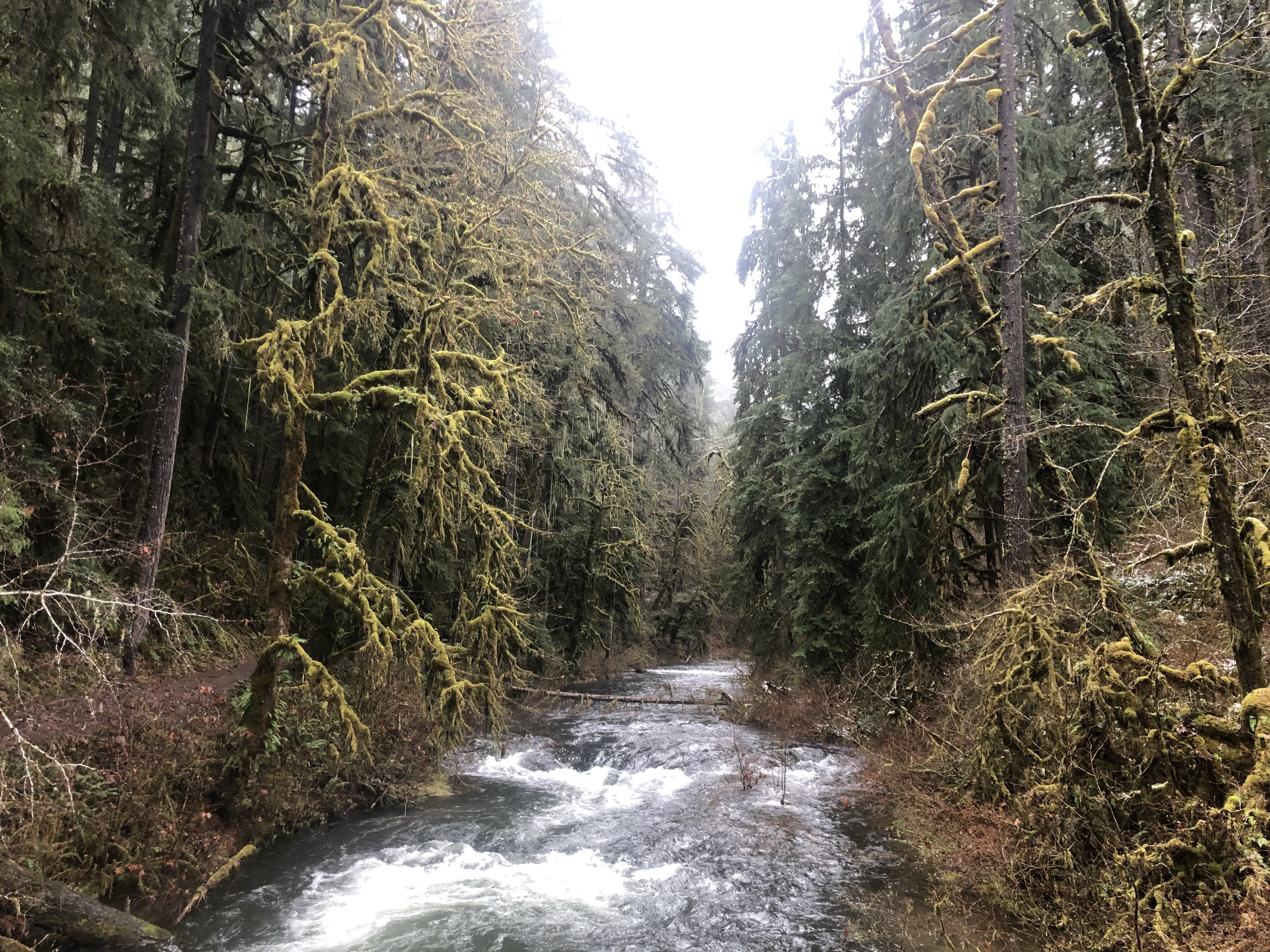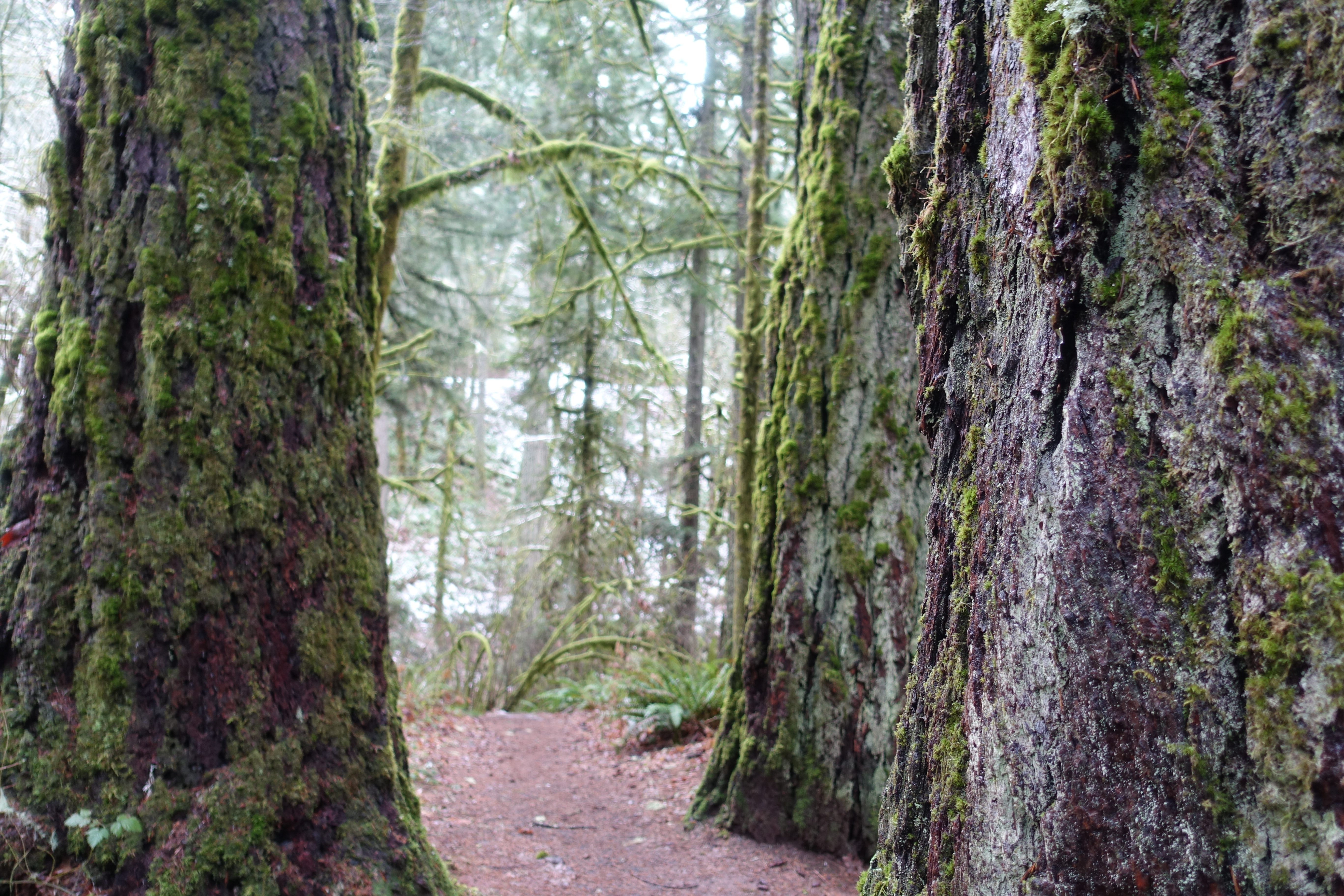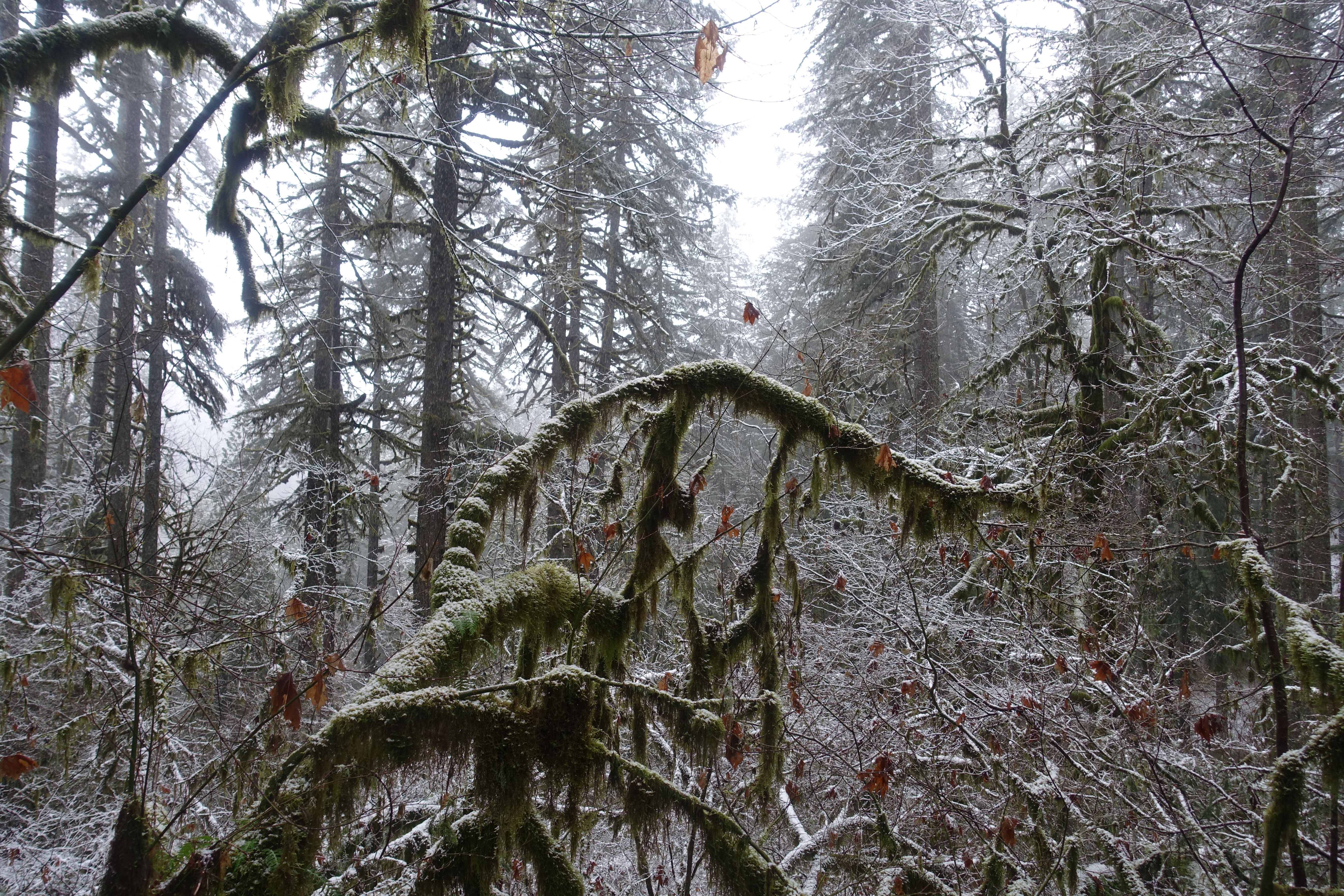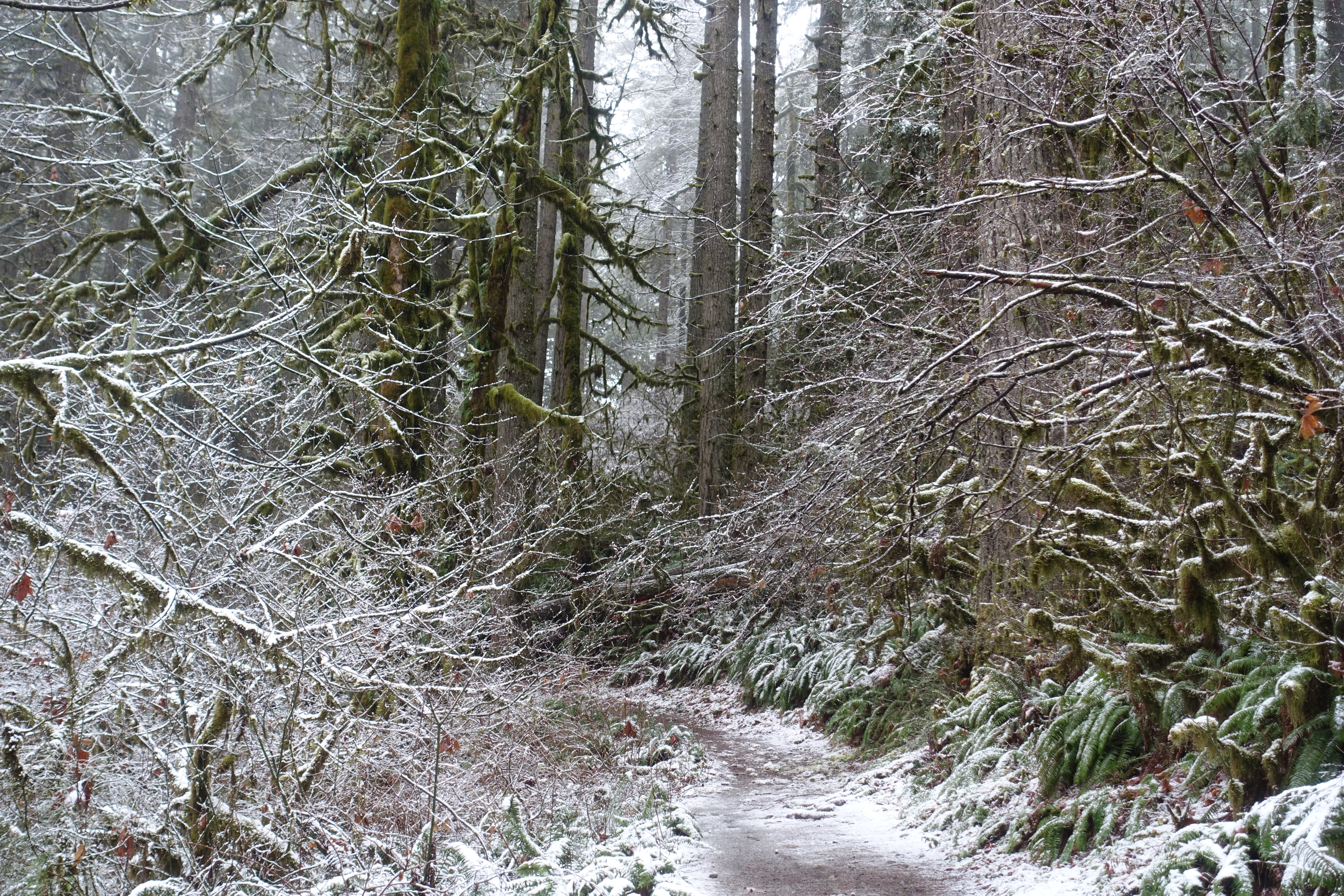 Heading out from Keizer, we went to the New Growth and Old Growth Trail, a managed research forest located in Corvallis, Oregon. The combination of ‘new growth’ (Douglas Fir trees planted over the last 5 decades for research) and ‘old growth’ (trees untouched and unmanaged for at least the last 100-150 years) created a vivid background for the hike. The more exposed sections of the trails and forest had some snow cover, but most of the undergrowth (what you’ll see while hiking) was free from snow. The temperatures were fairly mild, and you’re fairly protected from the wind.