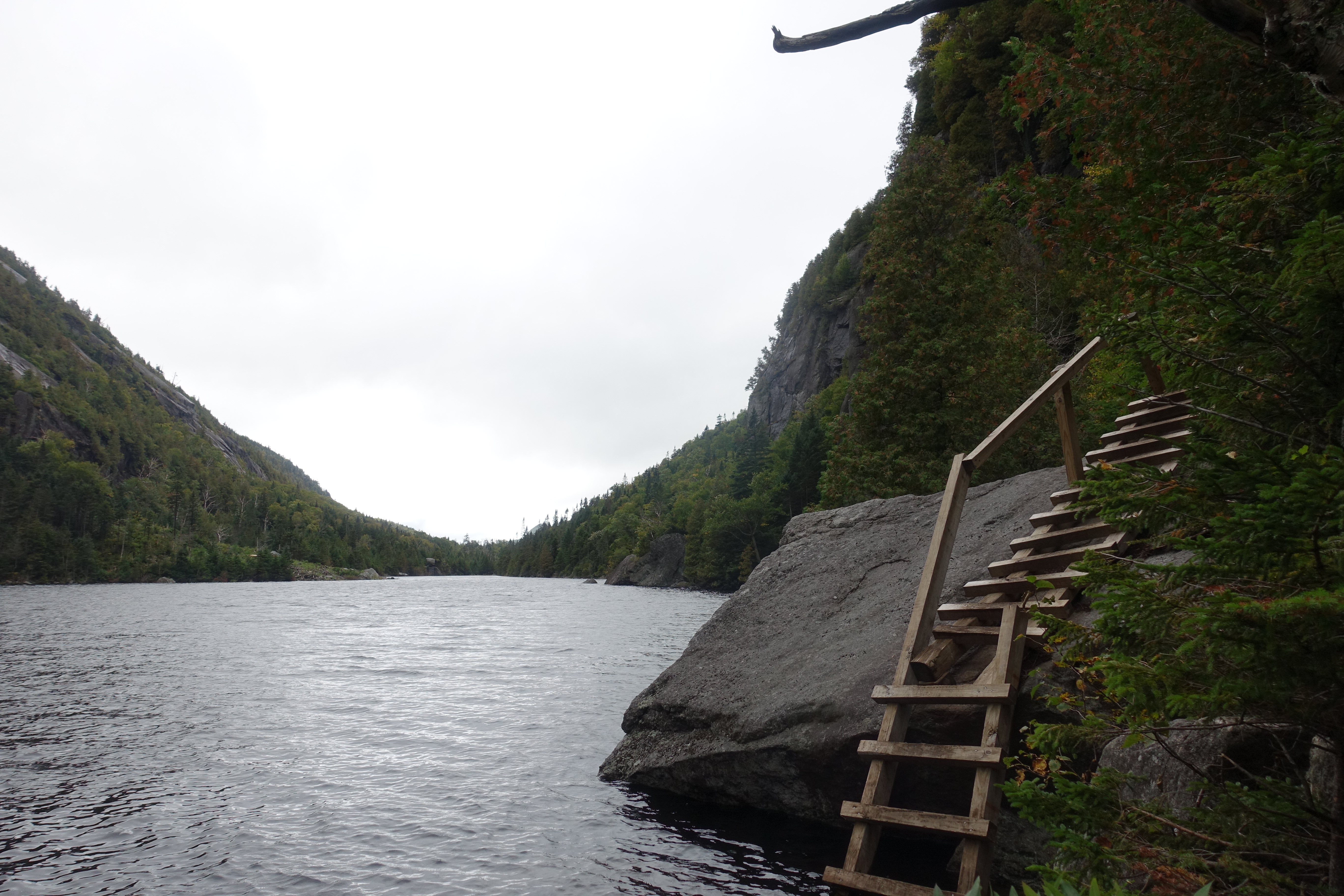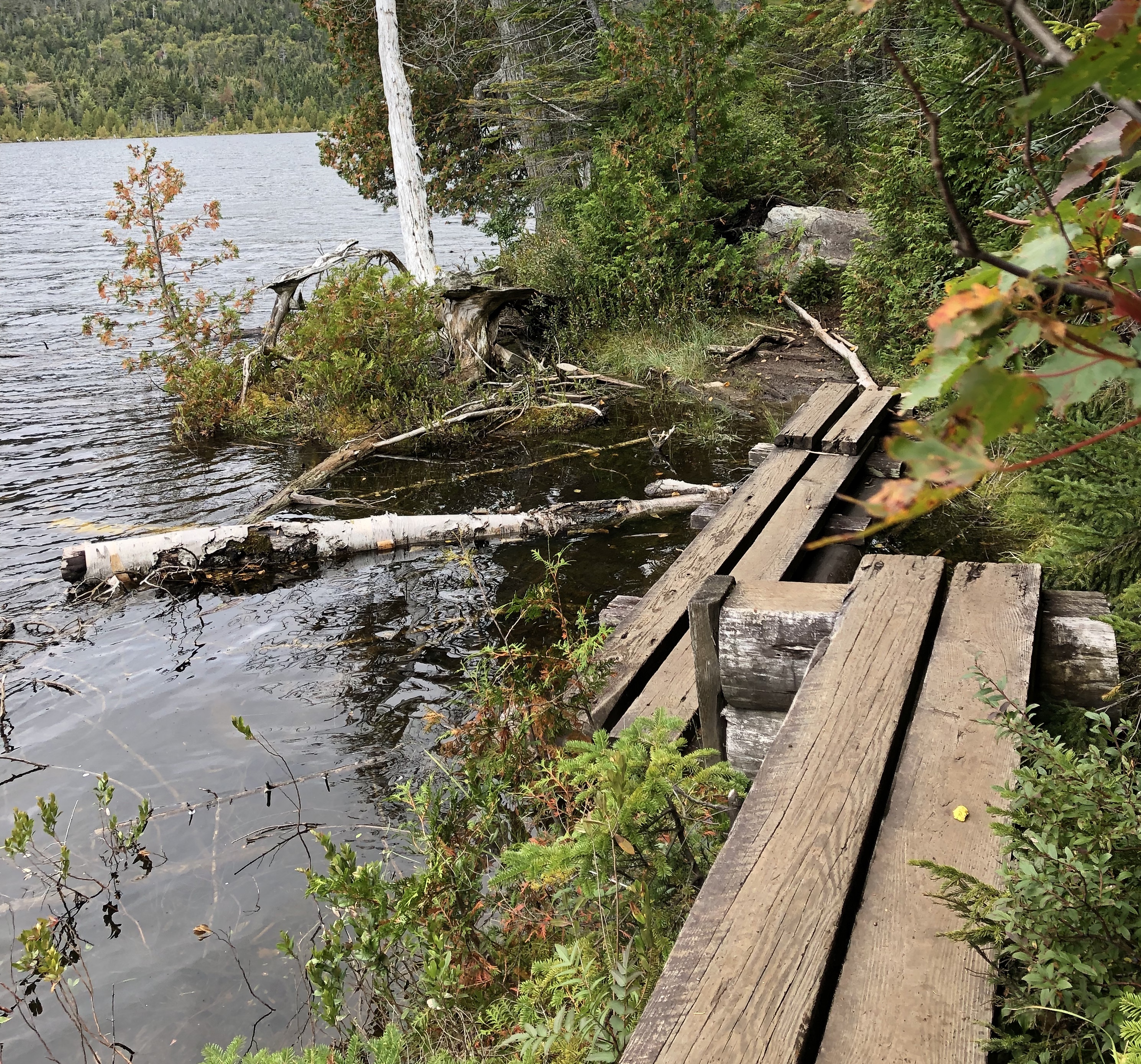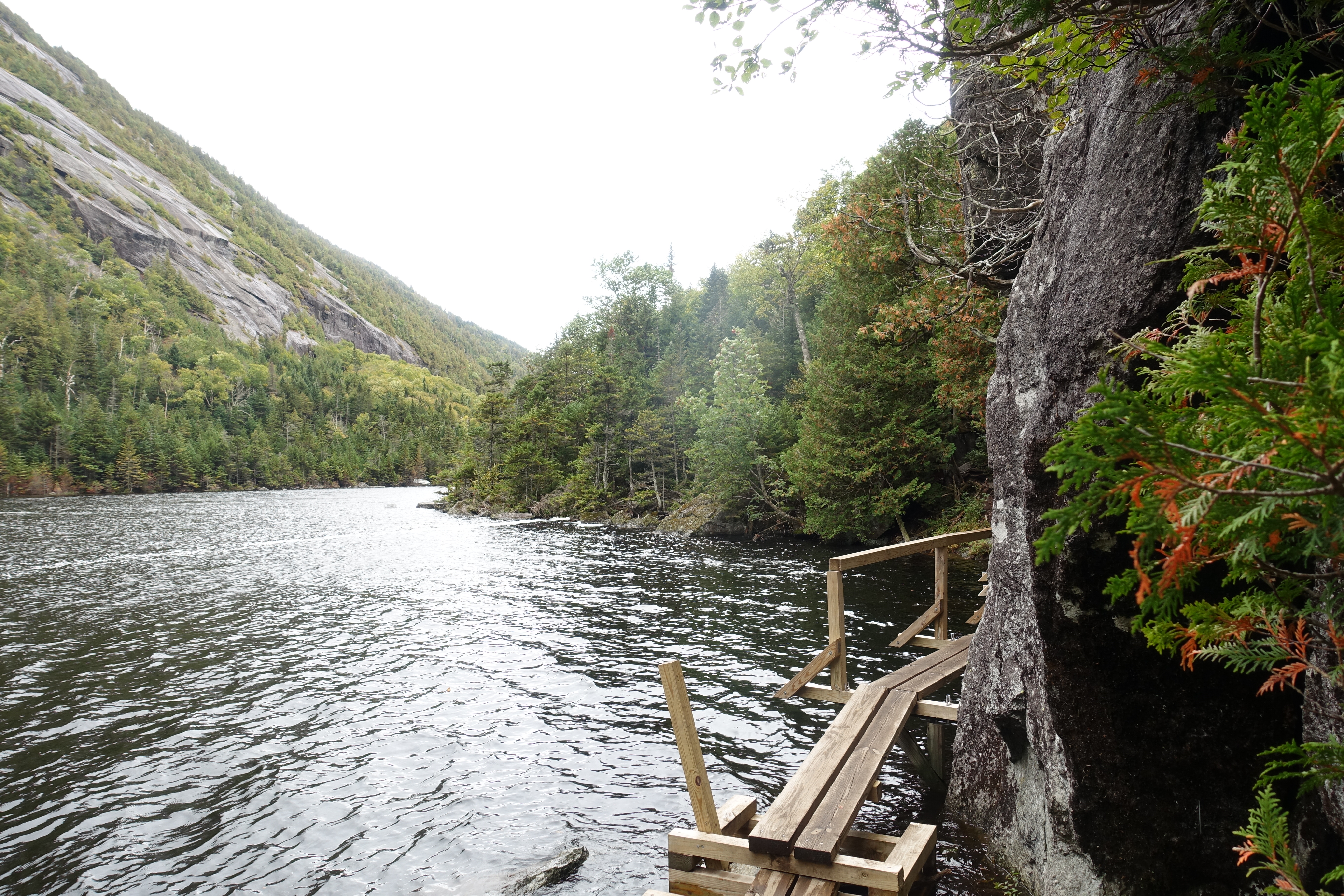 Lake Colden’s walkways and trails hugging the side of the lake were a little more challenging than the ones on Avalanche Lake. There was one section where I made a mistep and ended up about knee deep in water – luckily with my waterproof pants tucked in and waterproofed boots I was able to make it out before anything was soaked through.