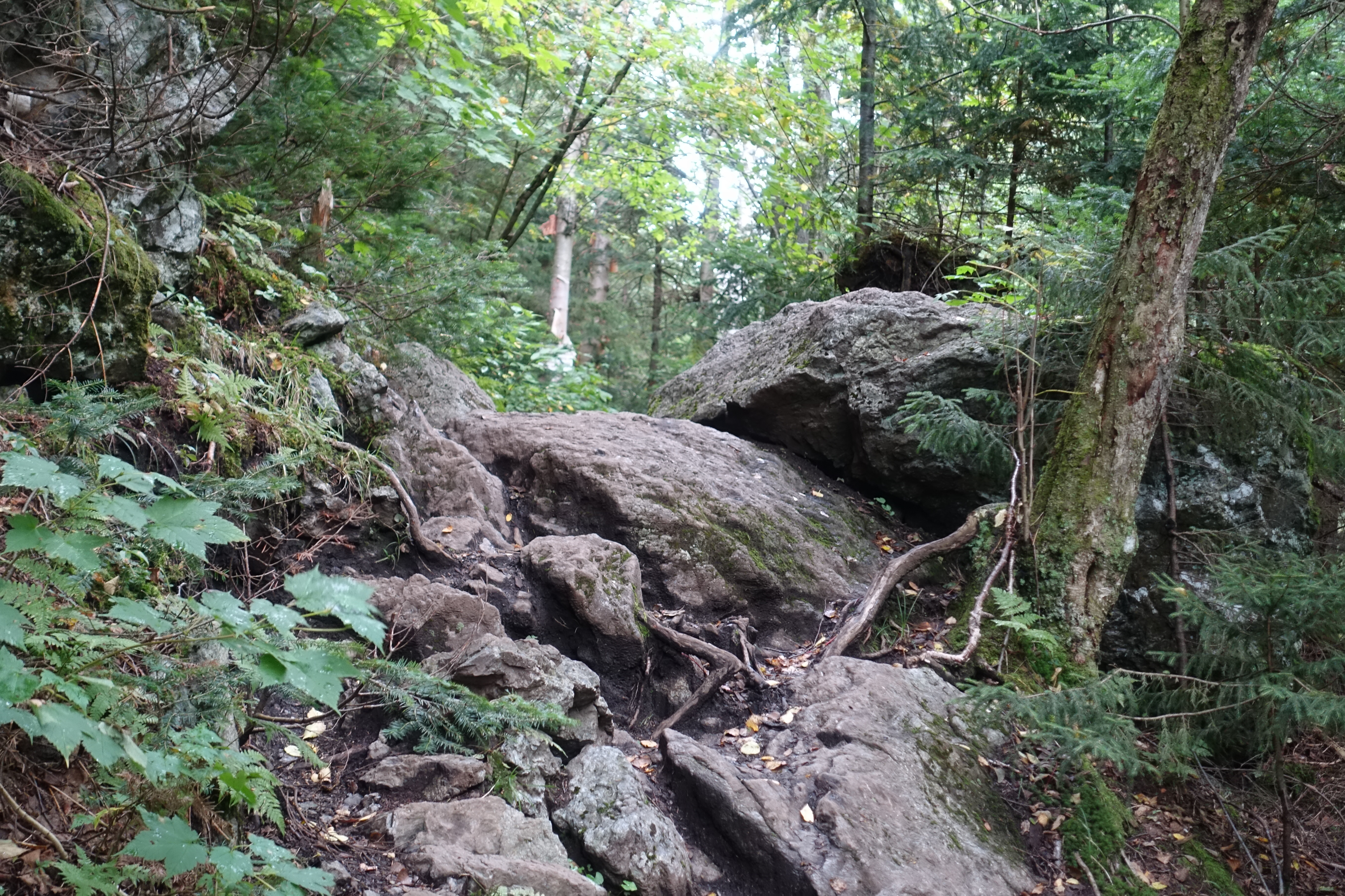 As you make your way through the narrow ravine flanked by steep walls of Colden’s base on your left and Avalanche Mountain’s on your right. It was difficult to get pictures that could do it justice – so you’ll just have to go and experience it for yourself. There’s some obstacles to go over, around or through, ranging from fallen trees, large boulders, and a labyrinth of tree roots.