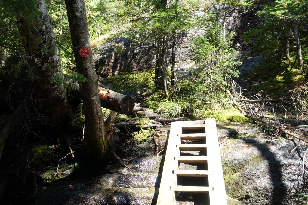 As you transition from rocky inclines to slides and steeper scrambles, there are several ladders and sets of stairs to aid you getting up.However, there were still several sections with a pretty steep pitch and slick, wet rock. Tread carefully!