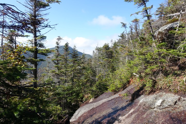 Gaining nearly 2,000 feet of elevation in just 1.6 miles, the trail to the summit is a challenging and strenuous one. As soon as you pass the marker above, you quickly begin to pickup elevation as the grade increases and doesn’t let up until you hit the summit. You’ll notice the color indicator is missing from the sign above, but you’ll be on the red trail from here to the summit. Beware it is not well marked and with some blowdown, you’ll need to pay attention to staying on trail.