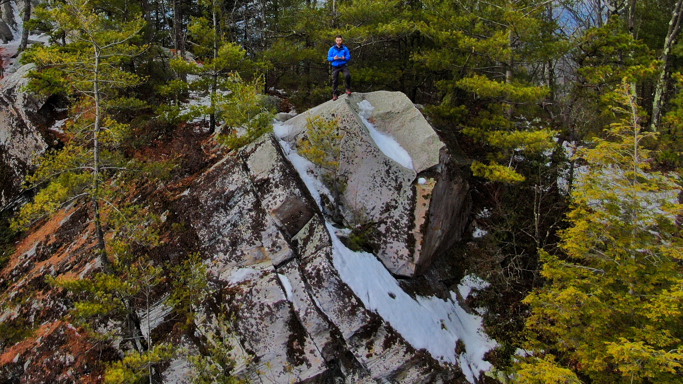 From there, you’ve got less than a half mile to go to reach the summit and the ridgeline, and you’ll get a few open views along the way looking out onto the valley below. I spent a few minutes at each of the viewpoints as I continued down the ridge. There are sheer drop offs on either side of the ridge, so be sure to watch your footing when getting near the edge. Also, much of the ridge’s shady area still had some ice, so I made sure to throw microspikes when working my way through here.