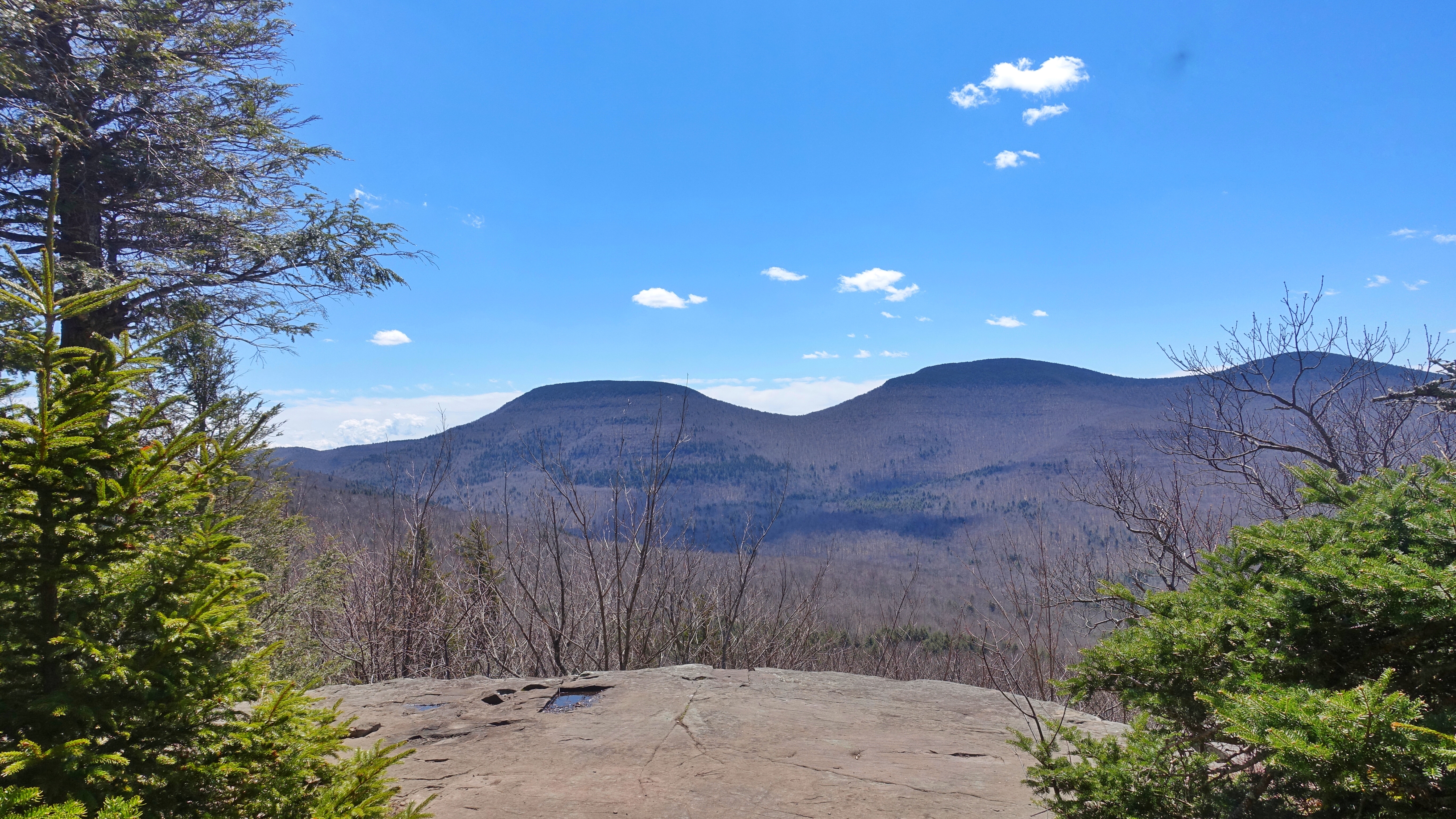 Ah – you’re now at the fifth tallest summit in the Catskill Mountains, at a lofty 3,940 feet above sea level. Even though there’s not much to see from there, like any peak you’ve just climbed, its still a great place to take it all in. The large boulder offers enough room for a few groups to relax, even when taking social distancing into account. Below, you can see just how deep into a sea of green the summit really is.