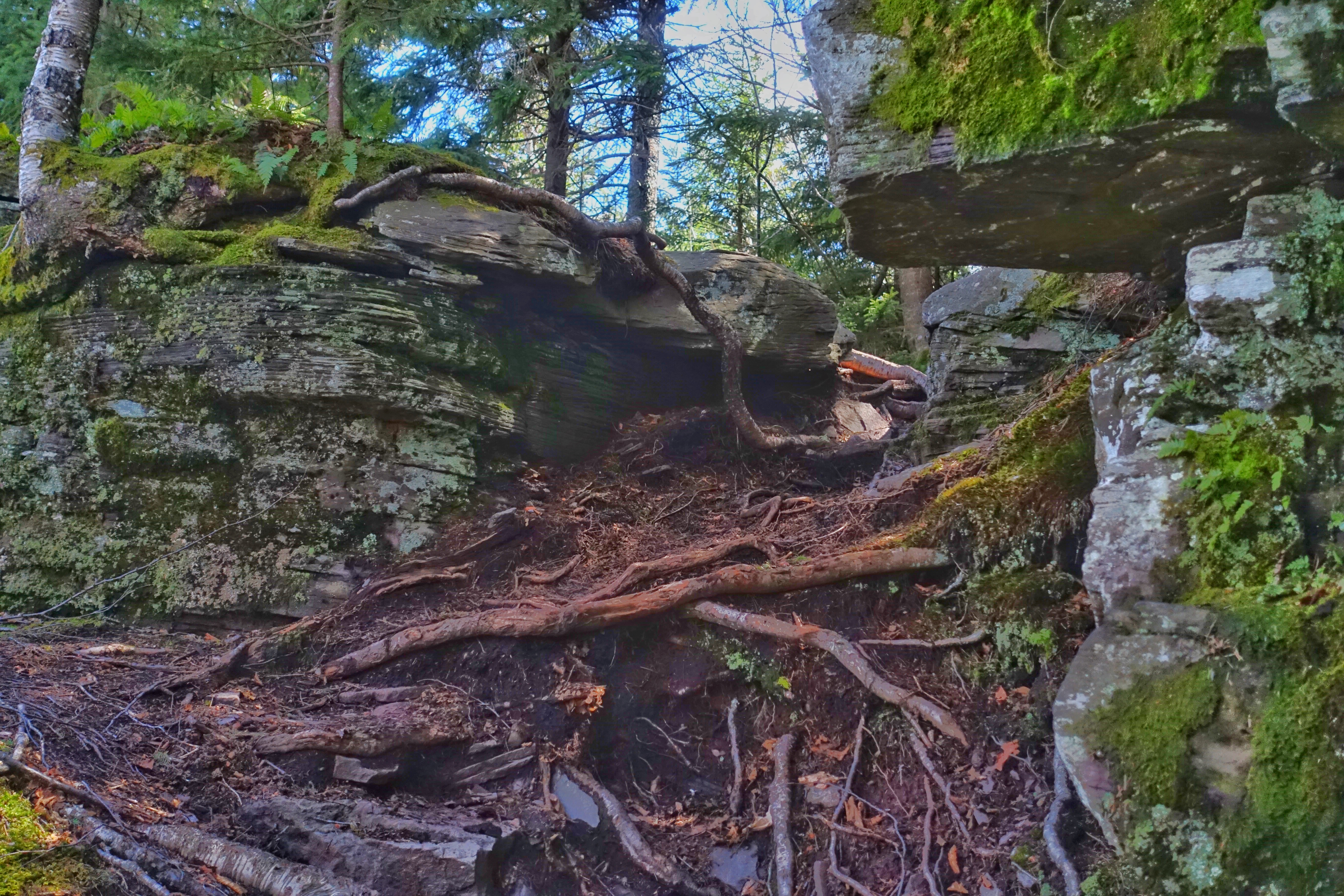 At about 3.6 miles in, you’ll come to the trail sign indicating that you’ve got .9 miles to get to the summit. From here, it does get quite difficult – you’ll need to use your hands, creative scrambling, and have good balance. Its a continually steep grade from here – you’ll gain over 1,100 feet of elevation in just .9 miles. As noted above, this was one of the most difficult ascents I’ve made in the Catskills.