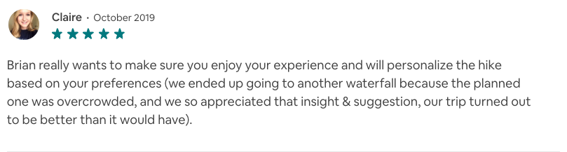 - For cancellations more than 1 week from experience, a 50% refund will be provided. No refunds given for no-shows on day of the scheduled hike